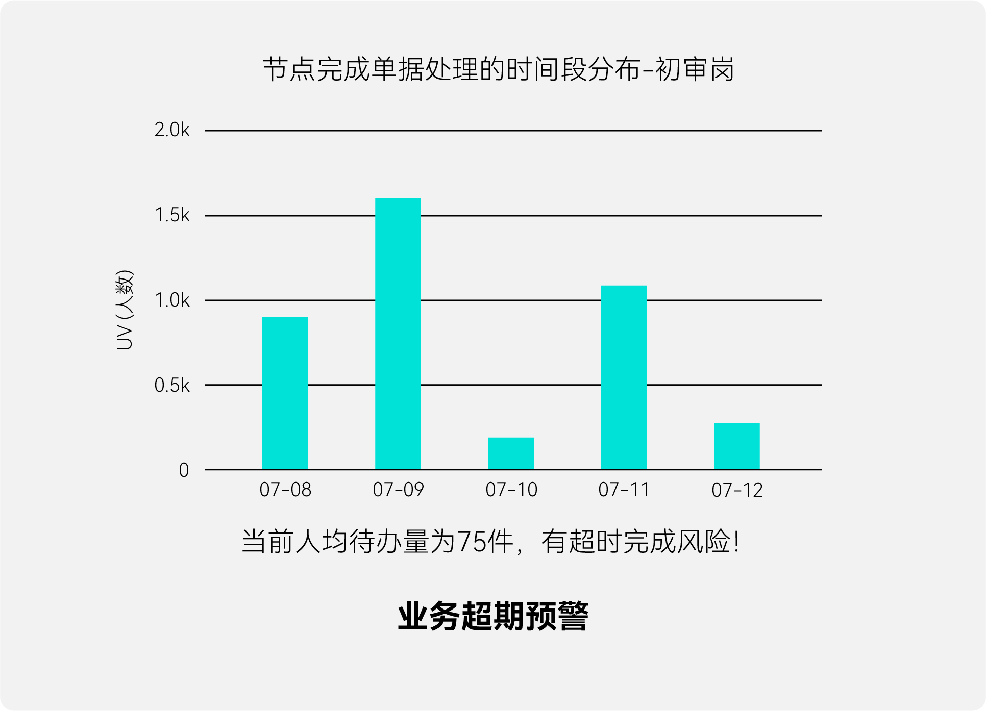 2、根據(jù)在線作業(yè)人力與平均處理耗時(shí),通過流程仿真模擬技術(shù),預(yù)測(cè)完成時(shí)間后自動(dòng)觸發(fā)超期預(yù)警,保證SLA達(dá)成率。